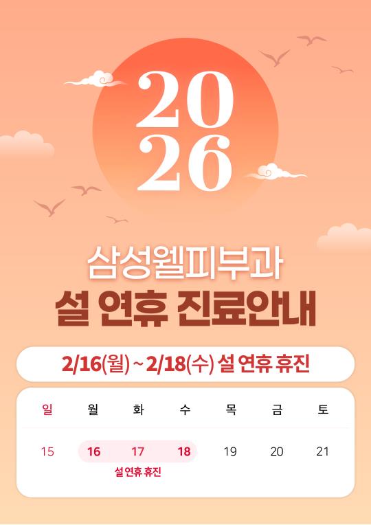 2월 16일(월) ~ 18일(수) 설 연휴기간 휴진합니다.